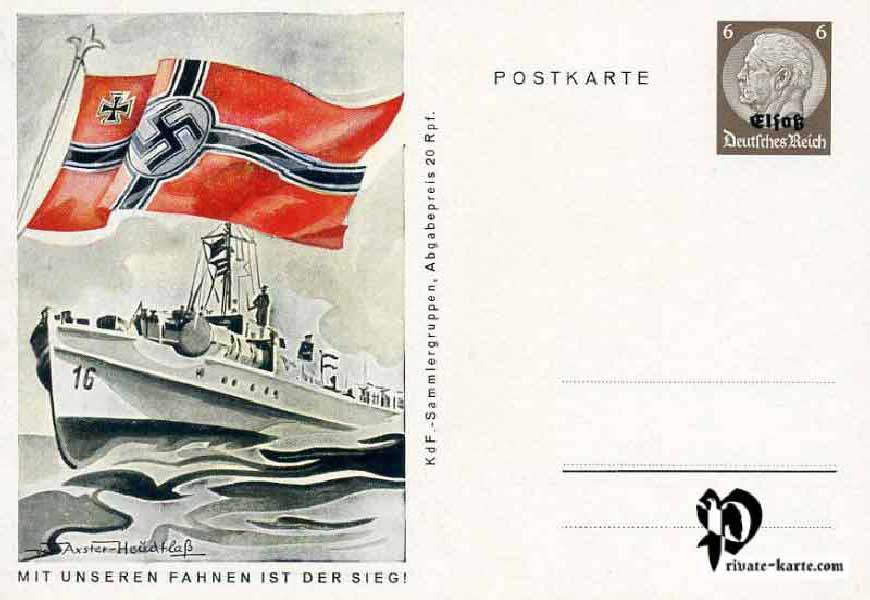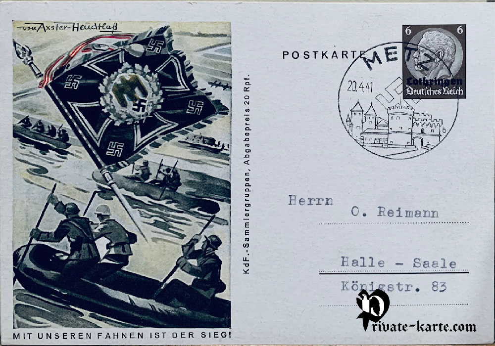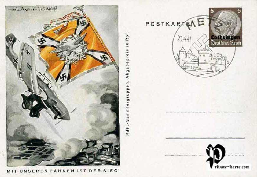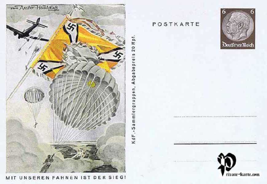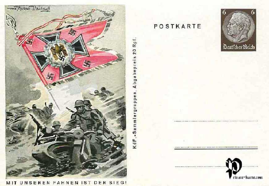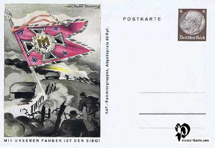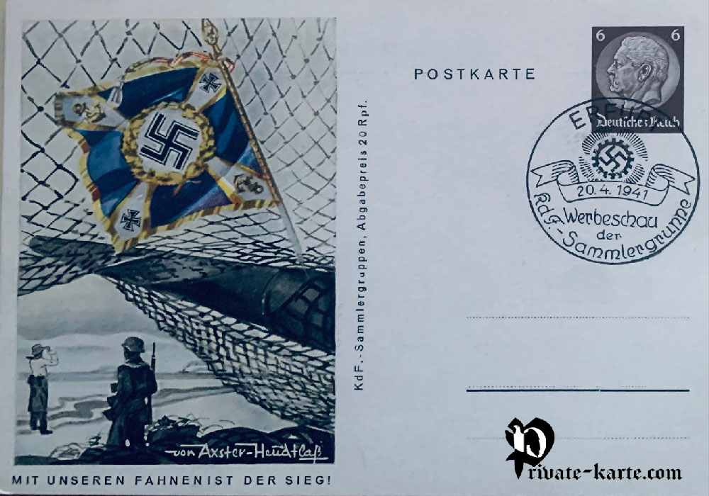 Carte postale émise à l'occasion de l'anniversaire d'Hitler en faveur du K.D.F (Kraft durch Freude) Groupes de collectionneurs 8 cartes postales