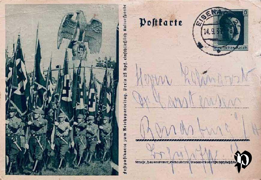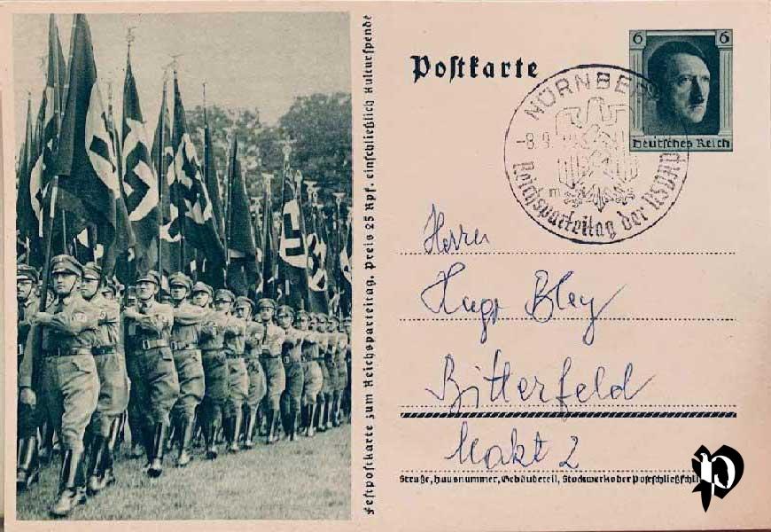 P264 : Carte postale commémorative du rassemblement du parti NSDAP 1937 à Nuremberg, Festpostkarte zum ReichsParteiTag