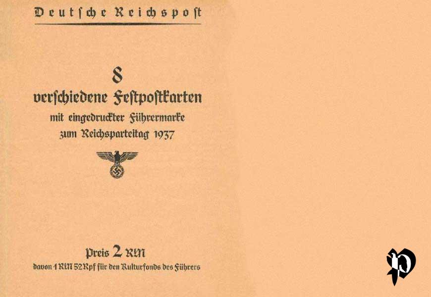 8 Cartes postales à collectionner avec sa pochette sortie pour la journée du parti NSDAP (Reichsparteitag 1937).