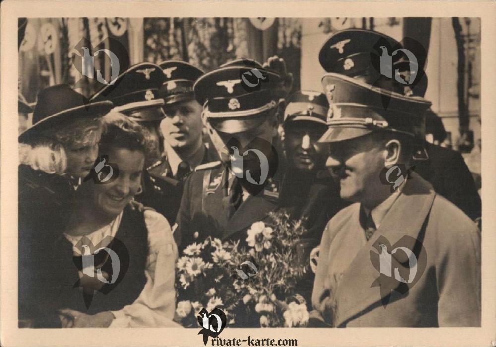 Carte postale d'Hitler et de sa sécurité SS et SA, trés rare piéce de collection.