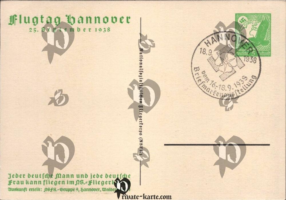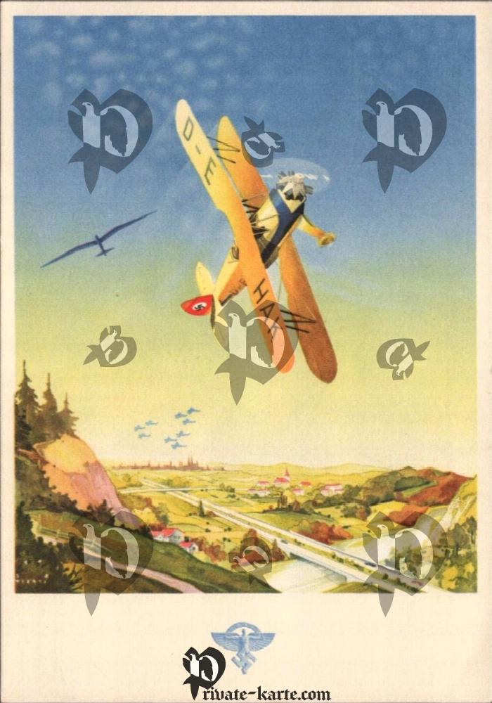 Carte postale officielle du NSFK (NS-FliegerKorps) il existe une version sans insciption en vert celle-ci est une édition spéciale pour la journée du vol à Hannover. La carte postale est en parfait état