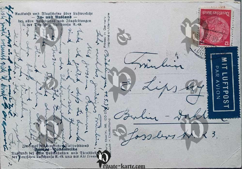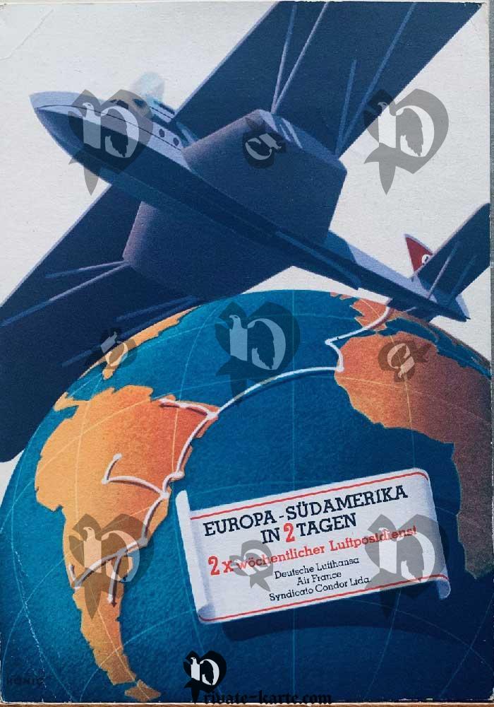 Trés rare carte postale de la Deutsche Lufthansa carte qui a voyagé par avion (Mitluftpost) Europe amérique du sud magnifique piéce une des plus belle, rare et carte postale unique.