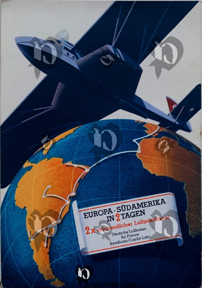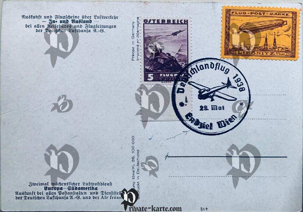 Trés rare carte postale de la Deutsche Lufthansa carte postale Europe amérique du sud magnifique piéce une des plus belle et de rare de la Lufthansa avec timbre d'Autriche Flug-Post-Marke LIEGNITZ, DeutschlandFlug 1938