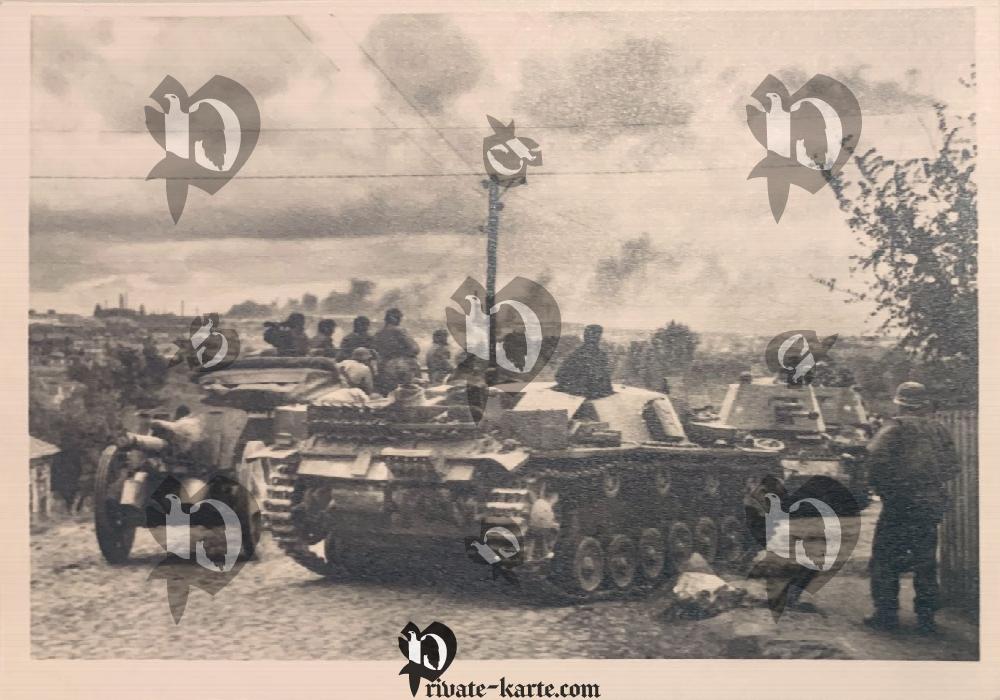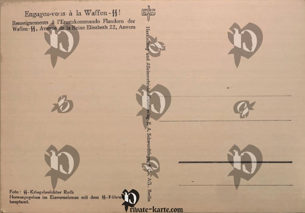 Carte postale de propagande de recrutement de la Waffen SS Anvers (Antwerpen) en Belgique photo du Kriegsberichter (Reporter de guerre) photo de Franz Roth éditer par E. A. Schwerdtfeger & Co. AG Berlin